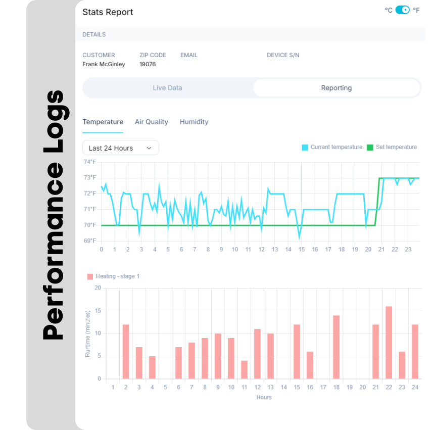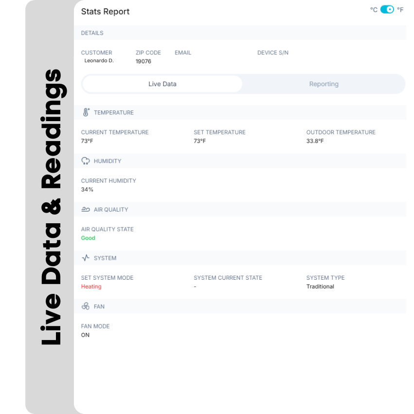 Live Data & ReadingsView real-time temperature, humidity levels, and system status at a glance. Whether at home or away, you’ll always have instant access to the latest climate control data for your home.